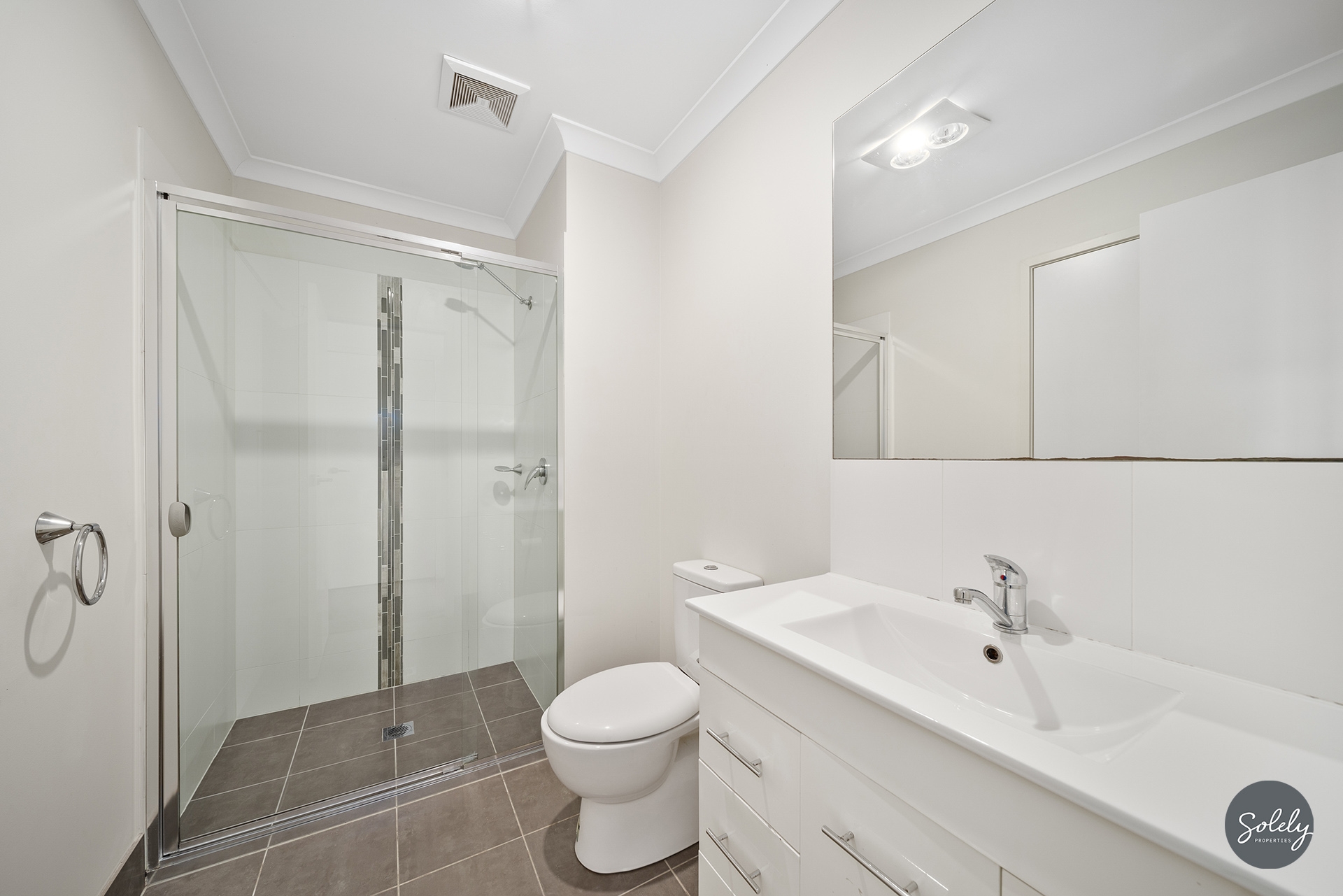 * Well-appointed bathroom with a generous shower, vanity and toilet