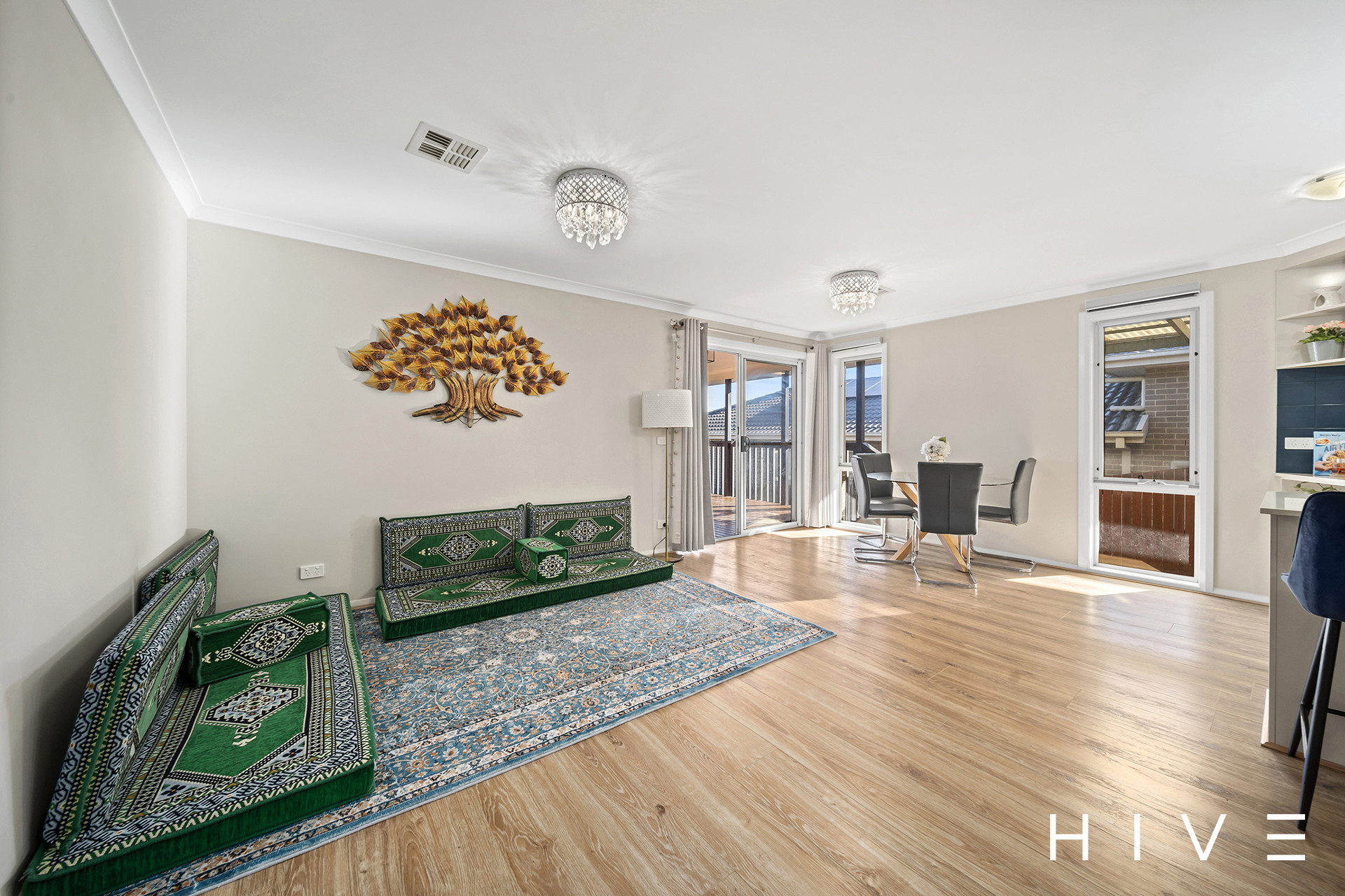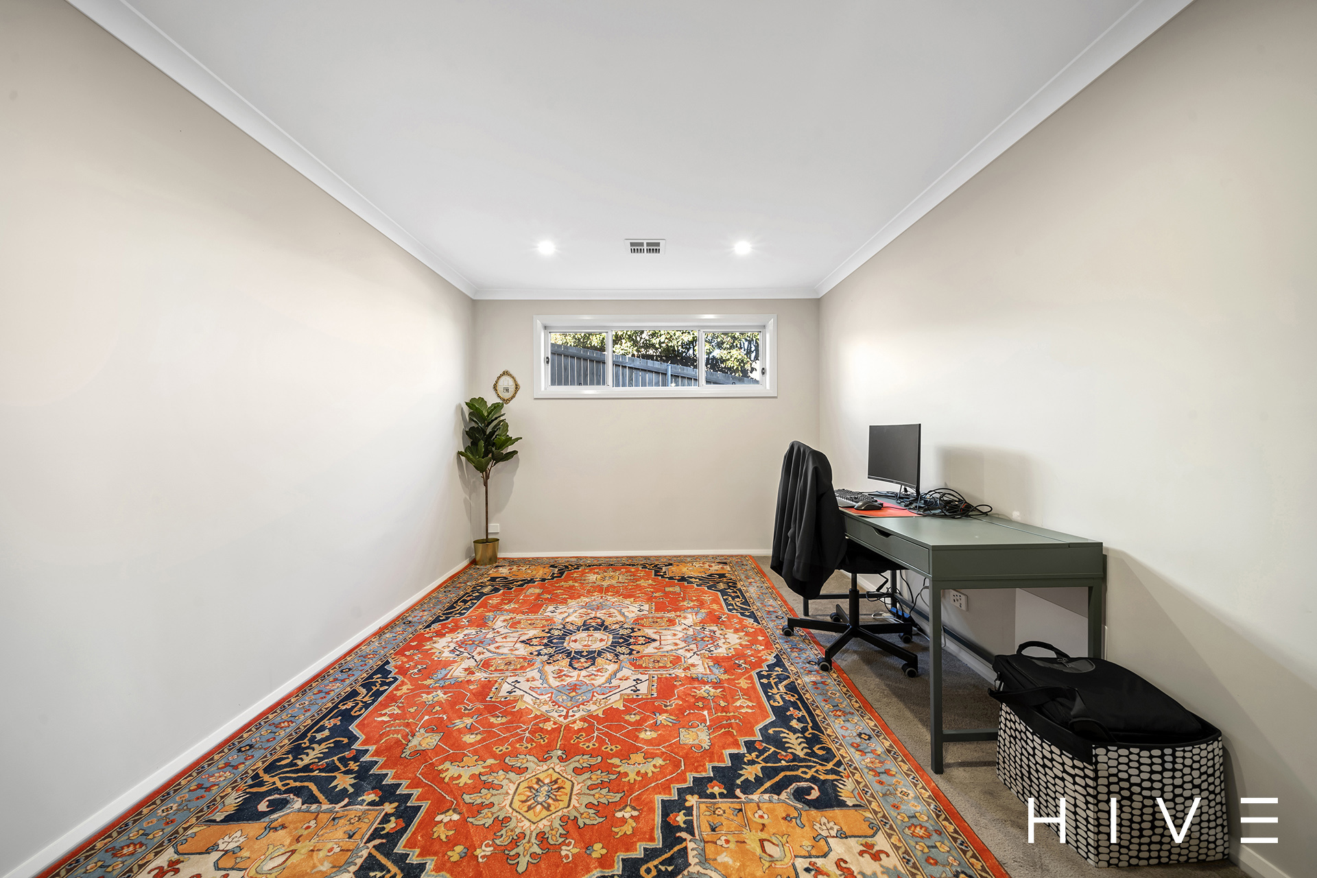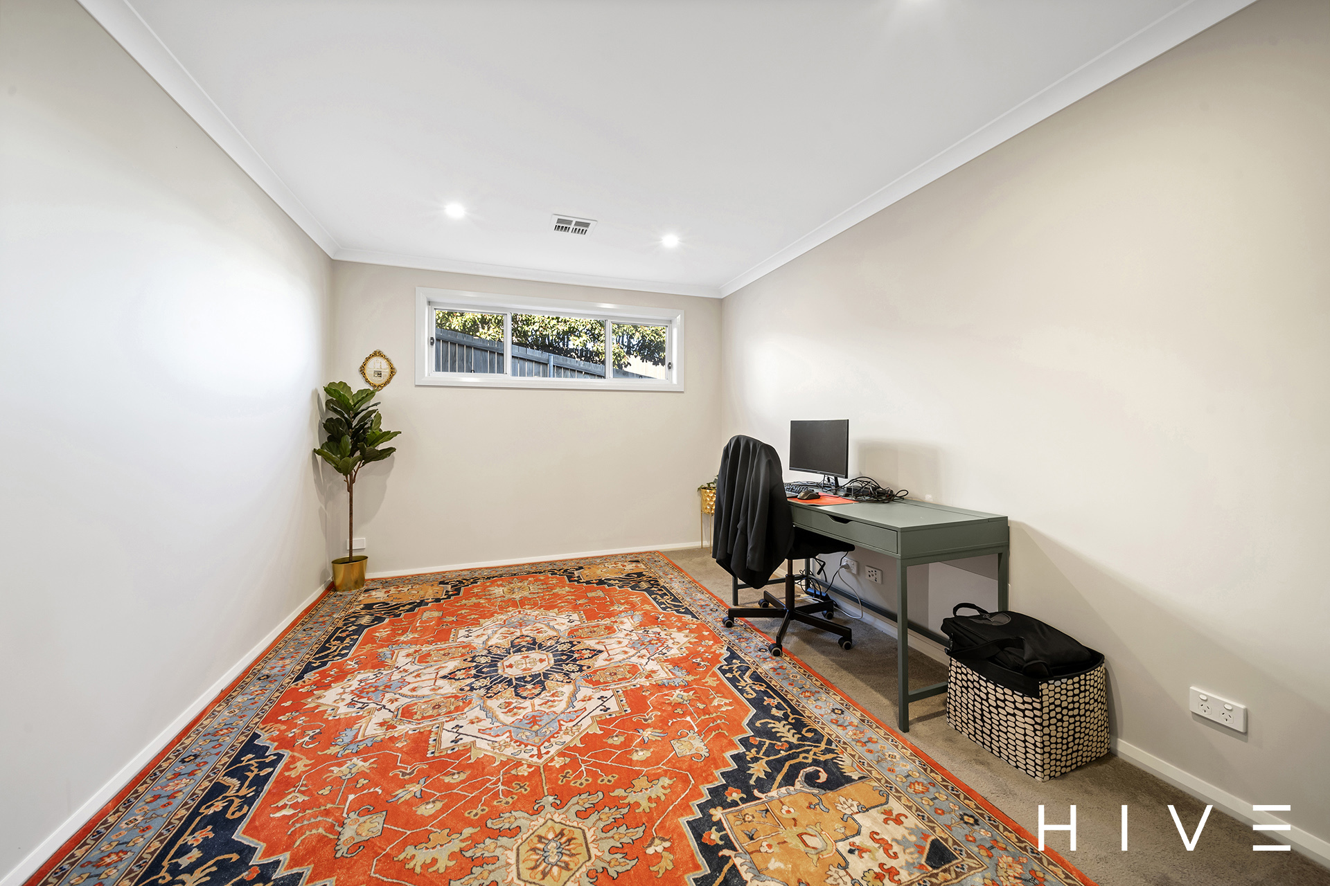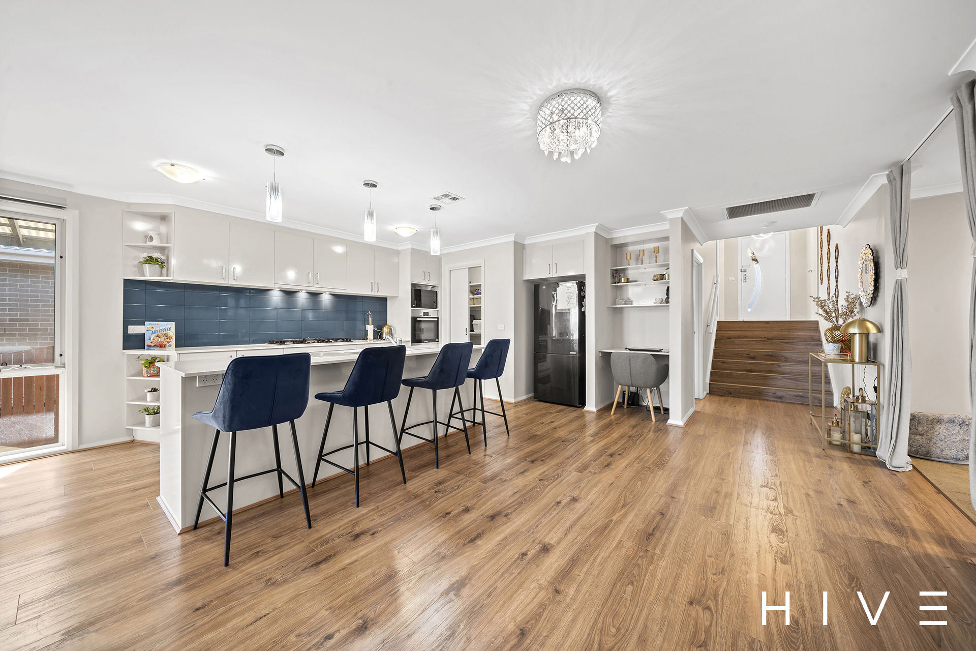 Master bedroom with ensuite and large walk-in robe 2 additional bedrooms with built-in robes Main bathrom includes spa bath 4th bedroom flexible as additional lounge room or theatre/study Formal lounge with built in robe for additional storage Open-plan kitchen, living, dining with views out to Bonner