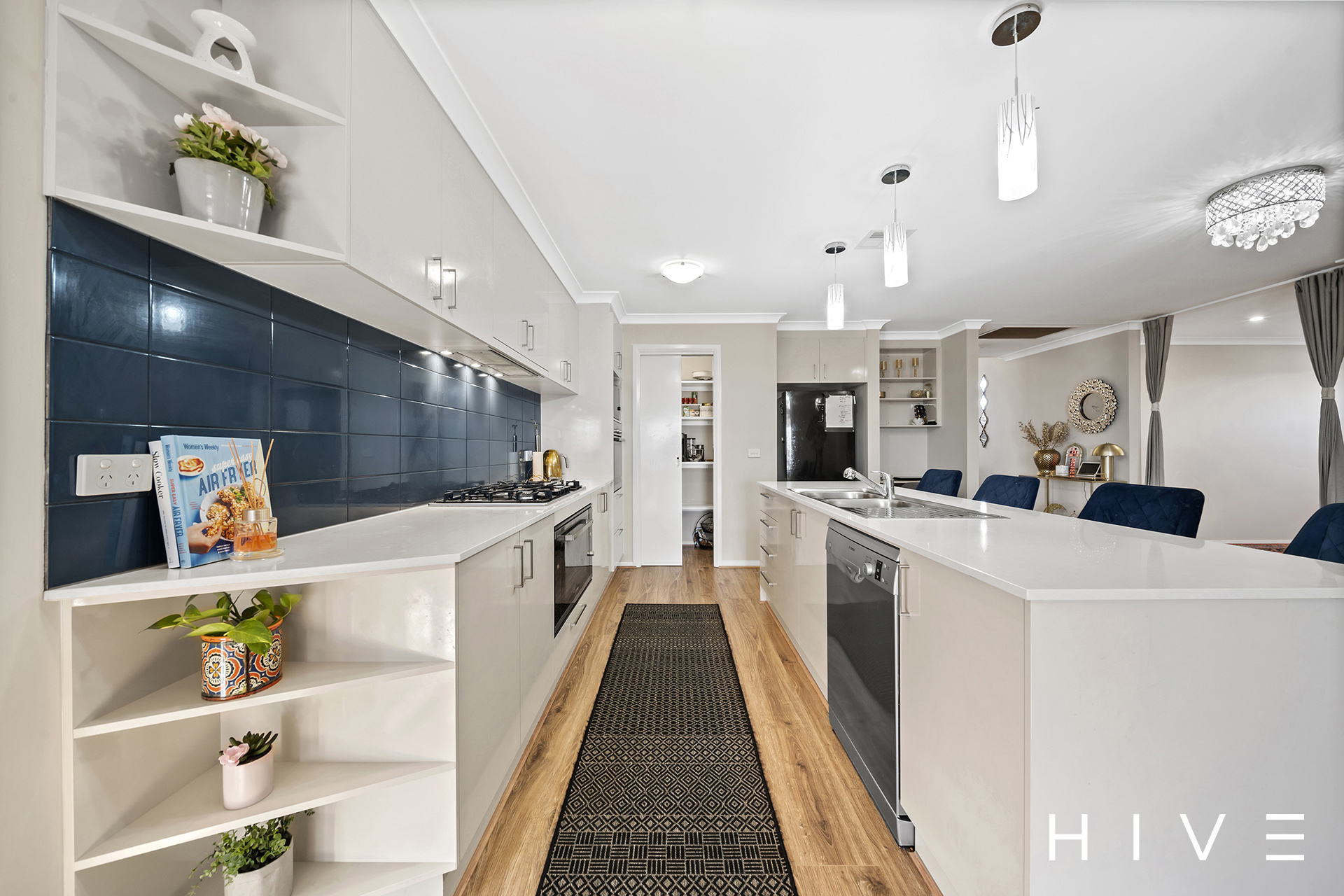 Gourmet kitchen with large island bench, 900mm gas cooktop and walk-in pantry Bosch appliances including 600mm & 900mm twin ovens Segregated living spaces for multiple family set ups Seperate laundry with stone benchtop Outdoor pergola with hardwood decking and under deck storage Large grassed outdoor area with natural grass on a north and west appointment 2-car lock-up garage with abundance of storage Additional 2 car tandem carport