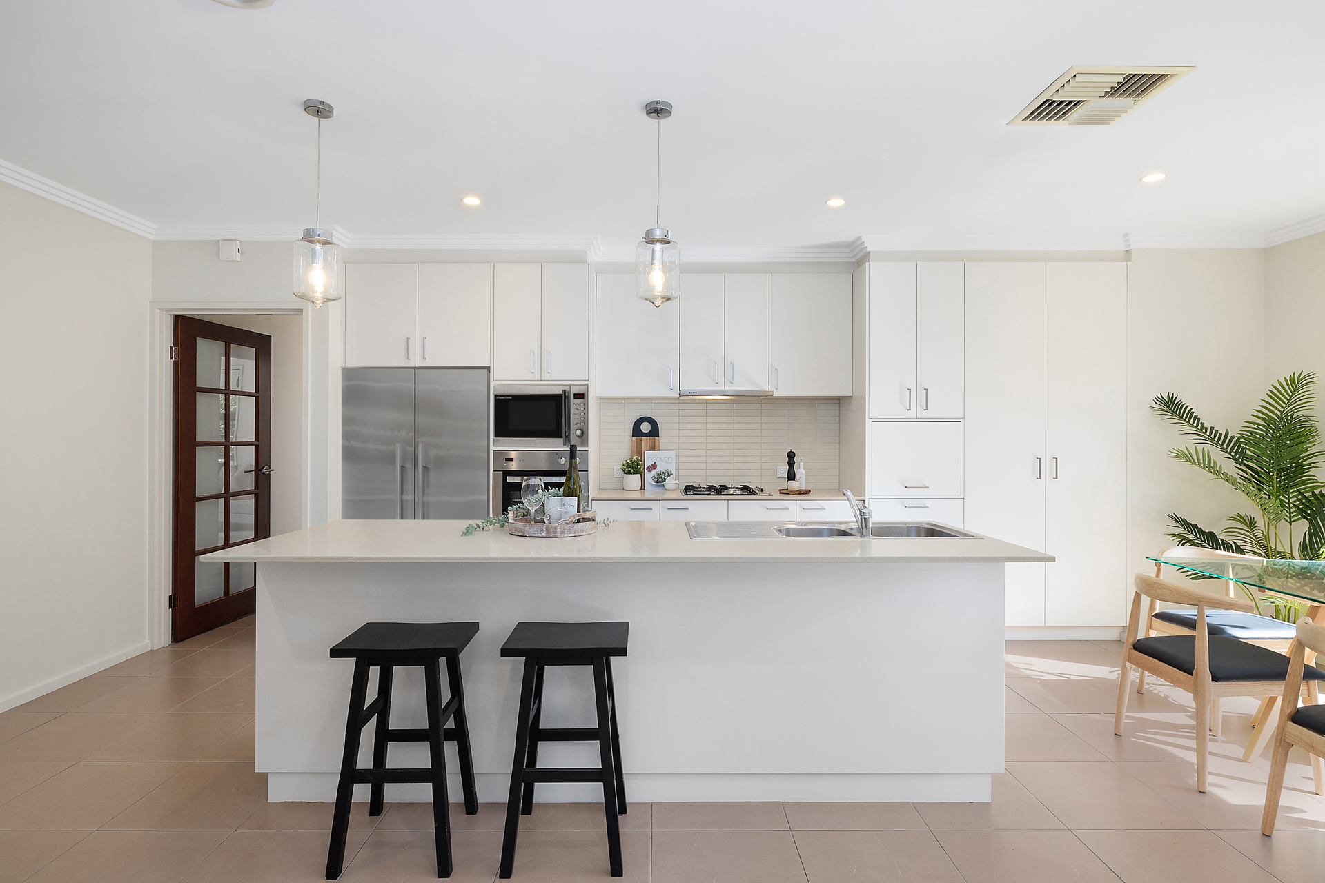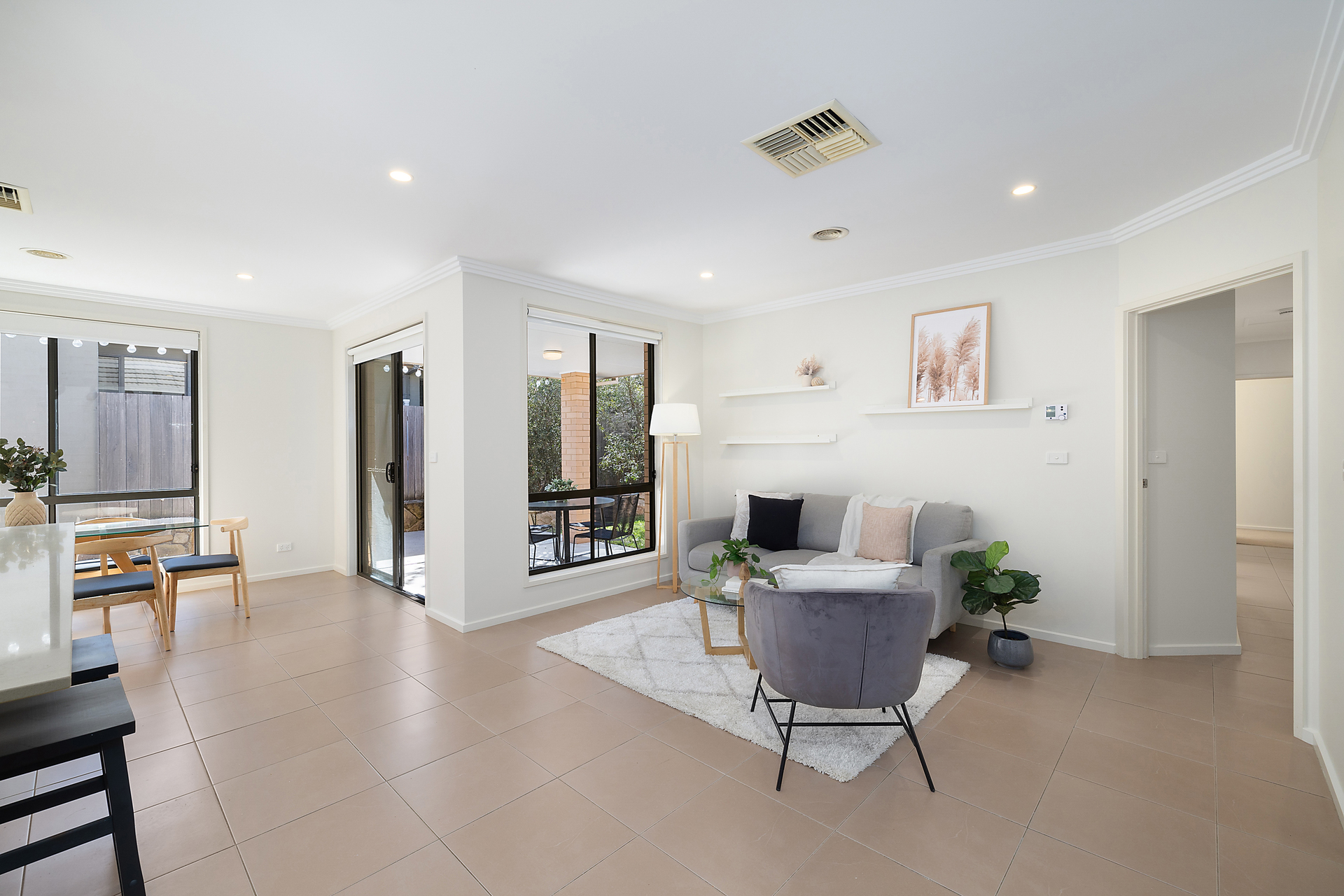 Inside: - Master bedroom featuring a walk-in robe and ensuite - All bedrooms equipped with built-in robes - Well-appointed main bathroom with a full-sized tub and separate toilet - Brightly lit front living area - Home theatre for entertainment - Open-plan family and dining area - Modern kitchen with an island bench - Laundry with convenient external access - Double car garage with internal access - Ducted gas heating and evaporative cooling