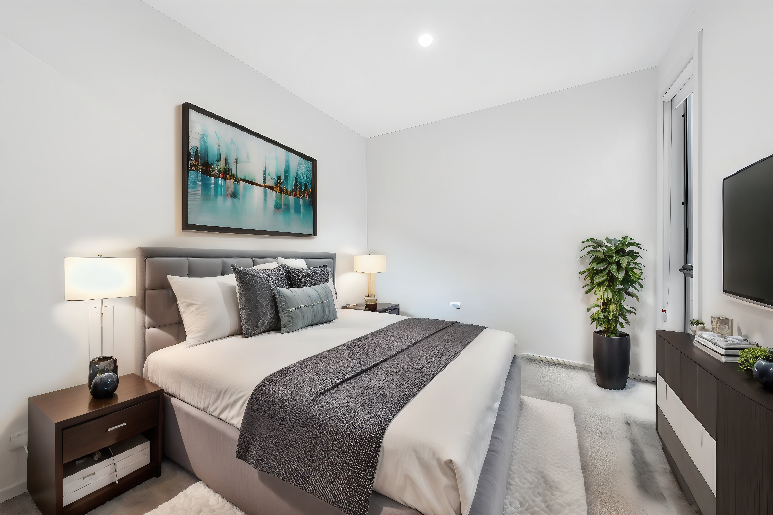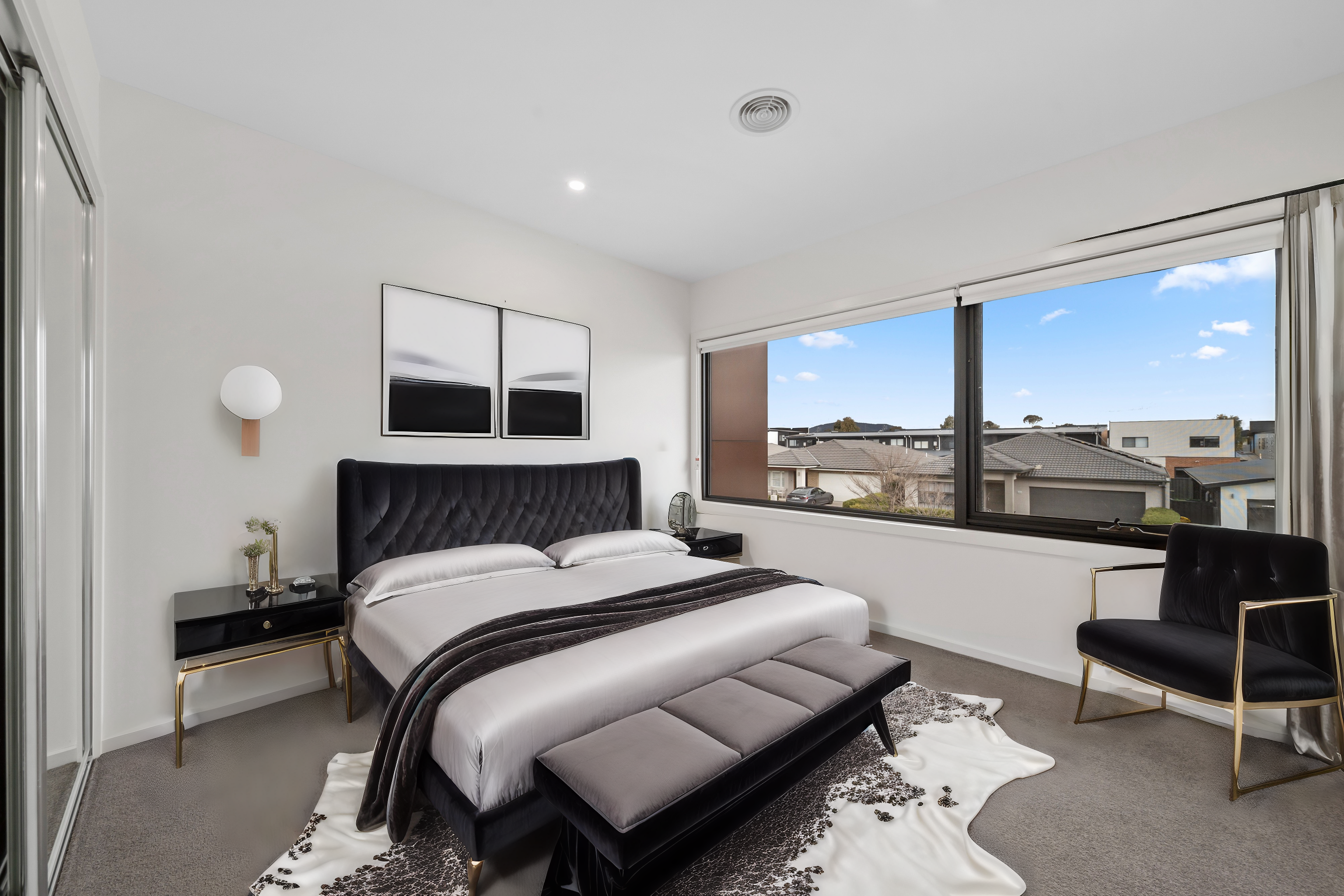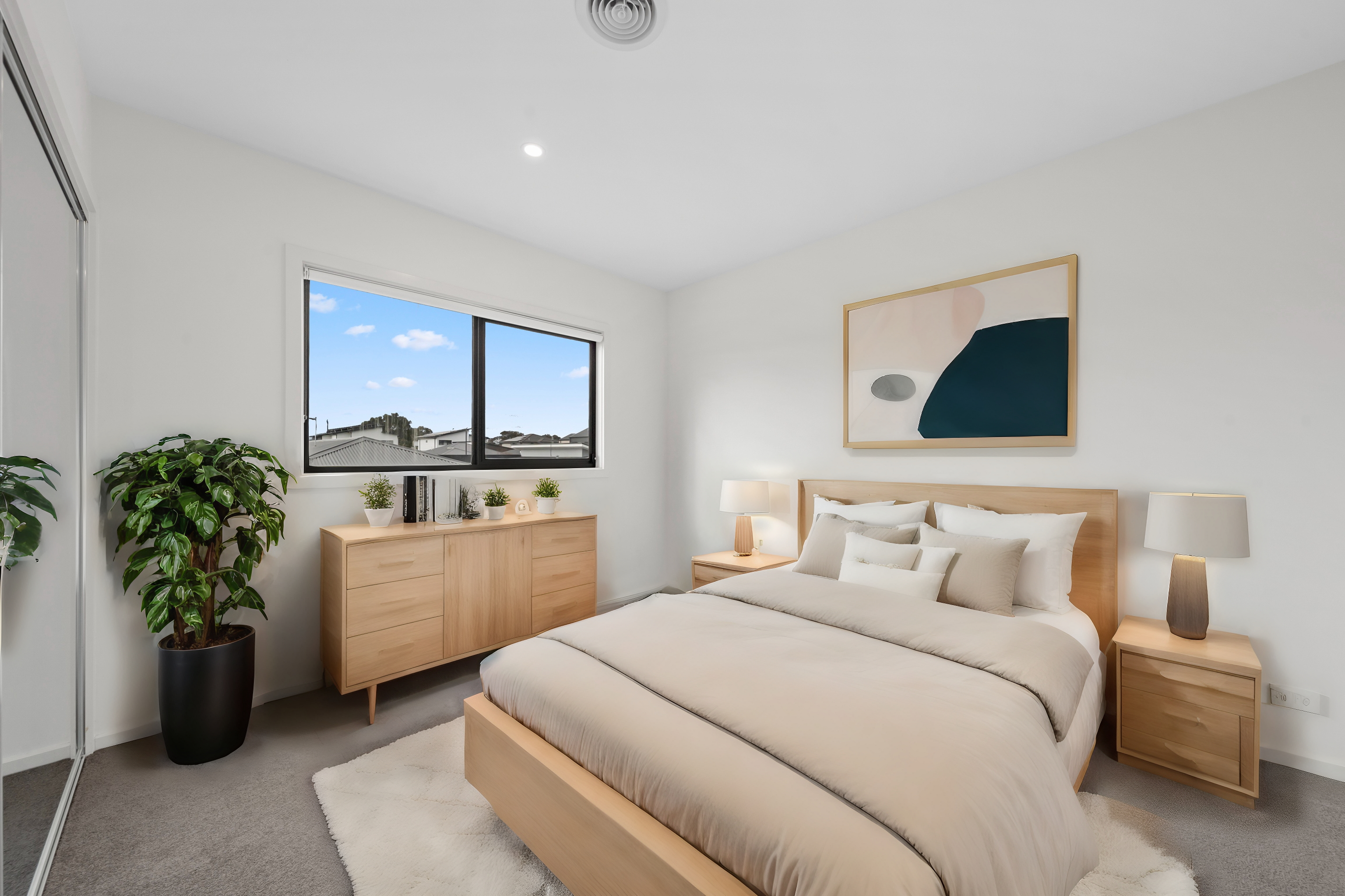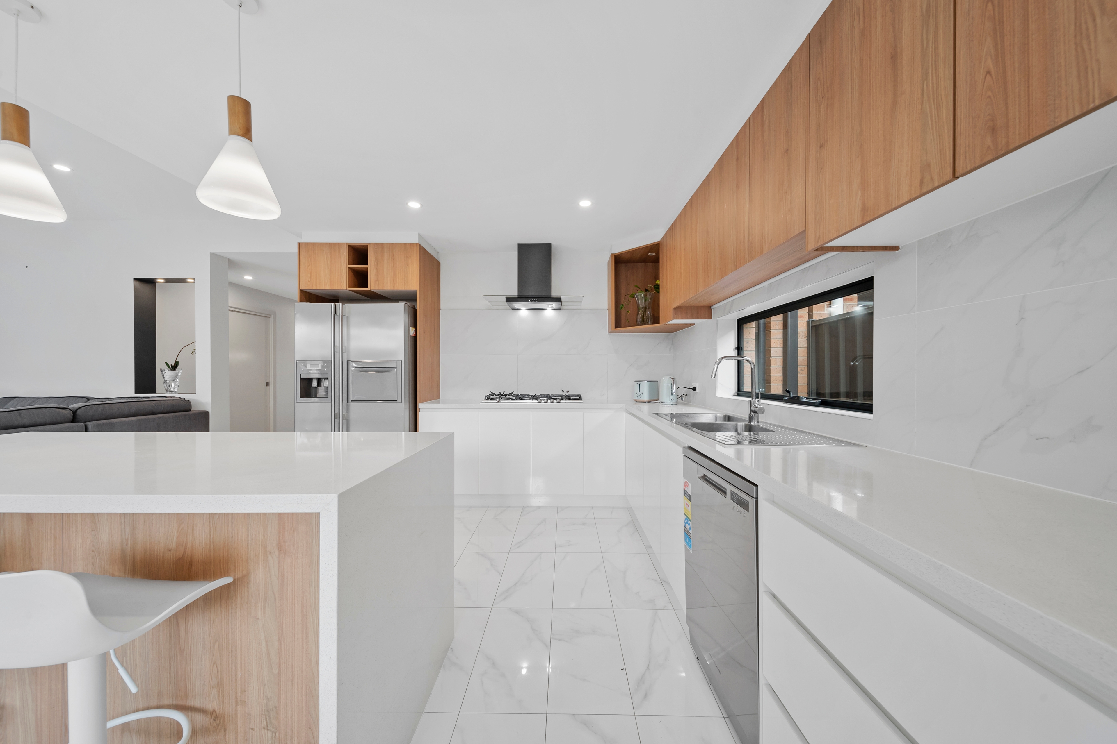 Gourmet Kitchen: - Sleek 20mm waterfall benchtop. - High-end 900mm gas cooktop and 600mm built-in oven. - Soft-close cabinetry and space for a double-door fridge with plumbing. - Pendant lighting in the dining area adds ambiance.