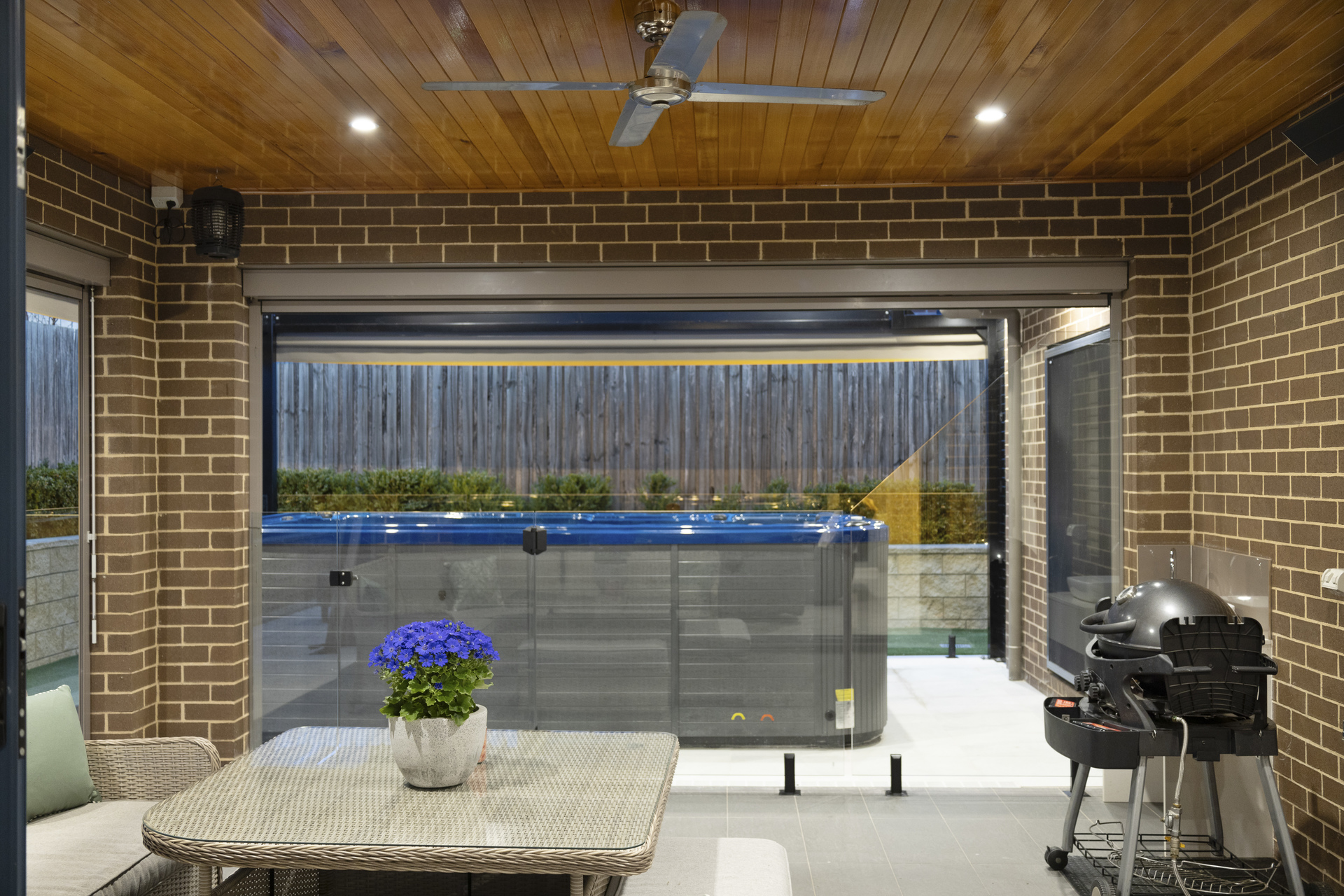 As you step through the solid timber front door, you are immediately greeted by an expansive open-plan living area, highlighted by 2700mm square-set ceilings and extended height glass sliding doors. These doors seamlessly connect the indoors with the outdoors, inviting you to a fully tiled, slip-resistant patio perfect for entertaining. Whether hosting a summer barbecue or enjoying a quiet evening by the 9KW heat pump swim spa, the outdoor living space is designed for relaxation and enjoyment year-round.