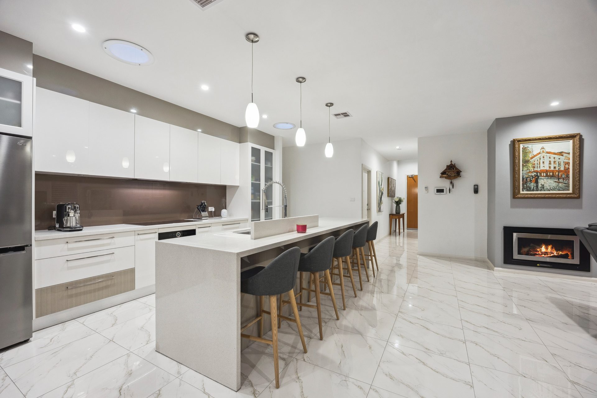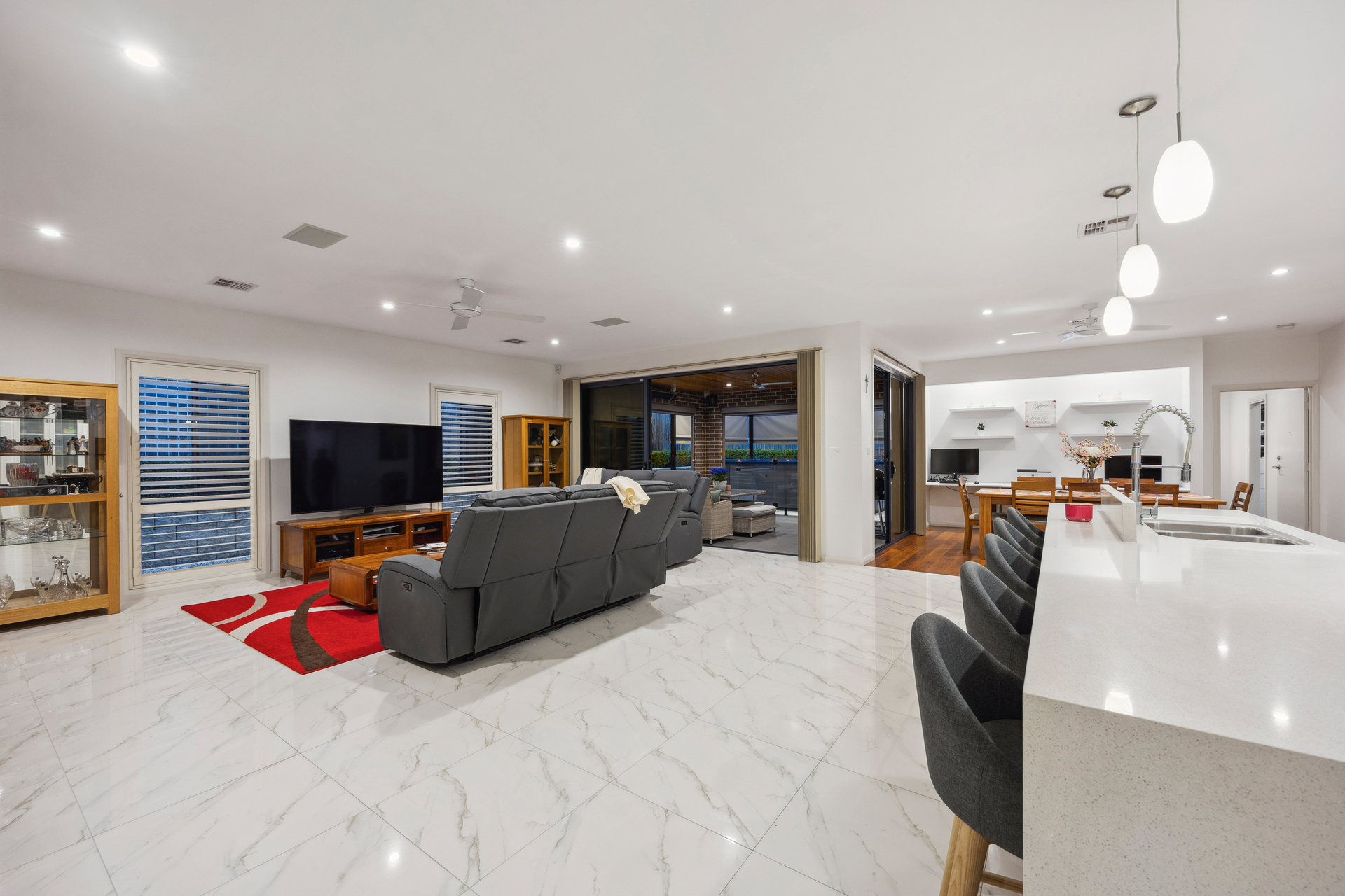 * 4 large bedrooms with built-in wardrobes * 3 full bathrooms with premium fixtures * 2-car garage with built-in storage and ducted vacuum system * Winning house on House Hunters International (Aired December 2020) * Open-plan living with 2700mm ceilings and extended height glass doors * Energy-efficient features: 11KW solar panels, Tesla2 solar battery, and solar window tinting * State-of-the-art kitchen with Bosch appliances and 40mm stone benchtops * Comprehensive security system with remote accessibility * Large patio with swim spa, inbuilt speakers, and outdoor blinds * Low-maintenance yard with synthetic lawns and irrigation system