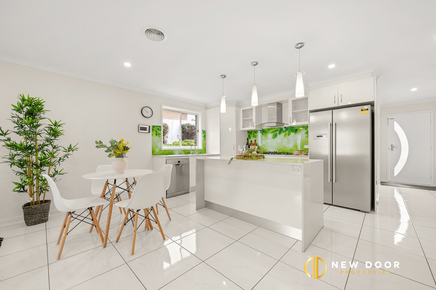 This home boasts 4 generously sized bedrooms, a formal lounge, and an open-plan living area adorned with contemporary fixtures. The master suite features a walk-in robe and a private ensuite, another guest bedroom downstairs with built-in robes, and an ensuite with two-way entry. The remaining 2 bedrooms are equipped with built-in robes and an additional rumps room. The custom-designed kitchen is a chef's dream, fully outfitted with stainless steel appliances and ample ofcupboard storage, making it perfect for hosting family and friends. The living area, designed with a growing family in mind, seamlessly extends through sliding doors to an outdoor alfresco area and a low-maintenance landscaped yard, making this home an entertainer's paradise.