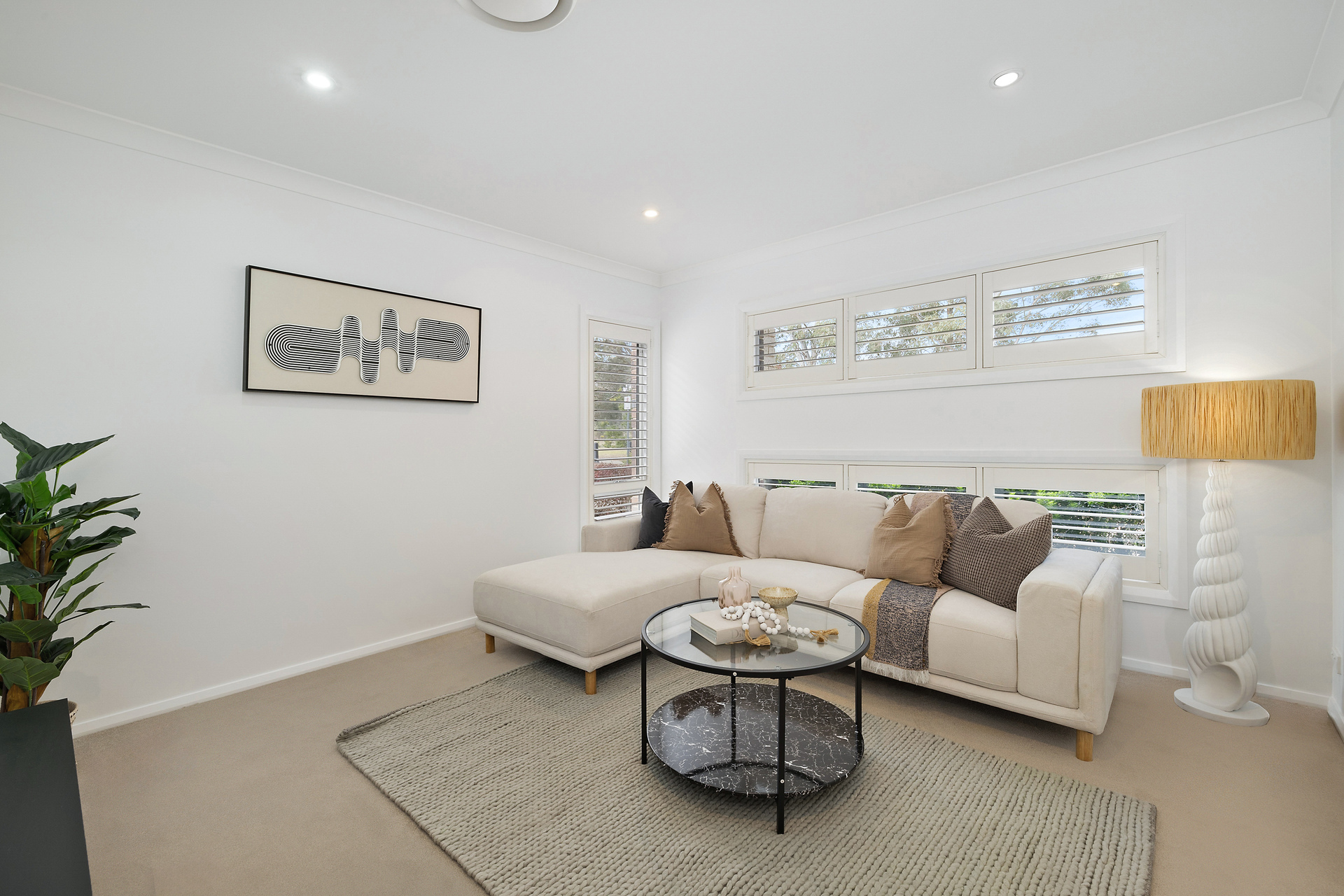 - Downstairs lounge or theatre room - Separate Study for your work-from-home needs - Modern Laundry with convenient access outside - Double car garage with internal and external access - Plantation shutters