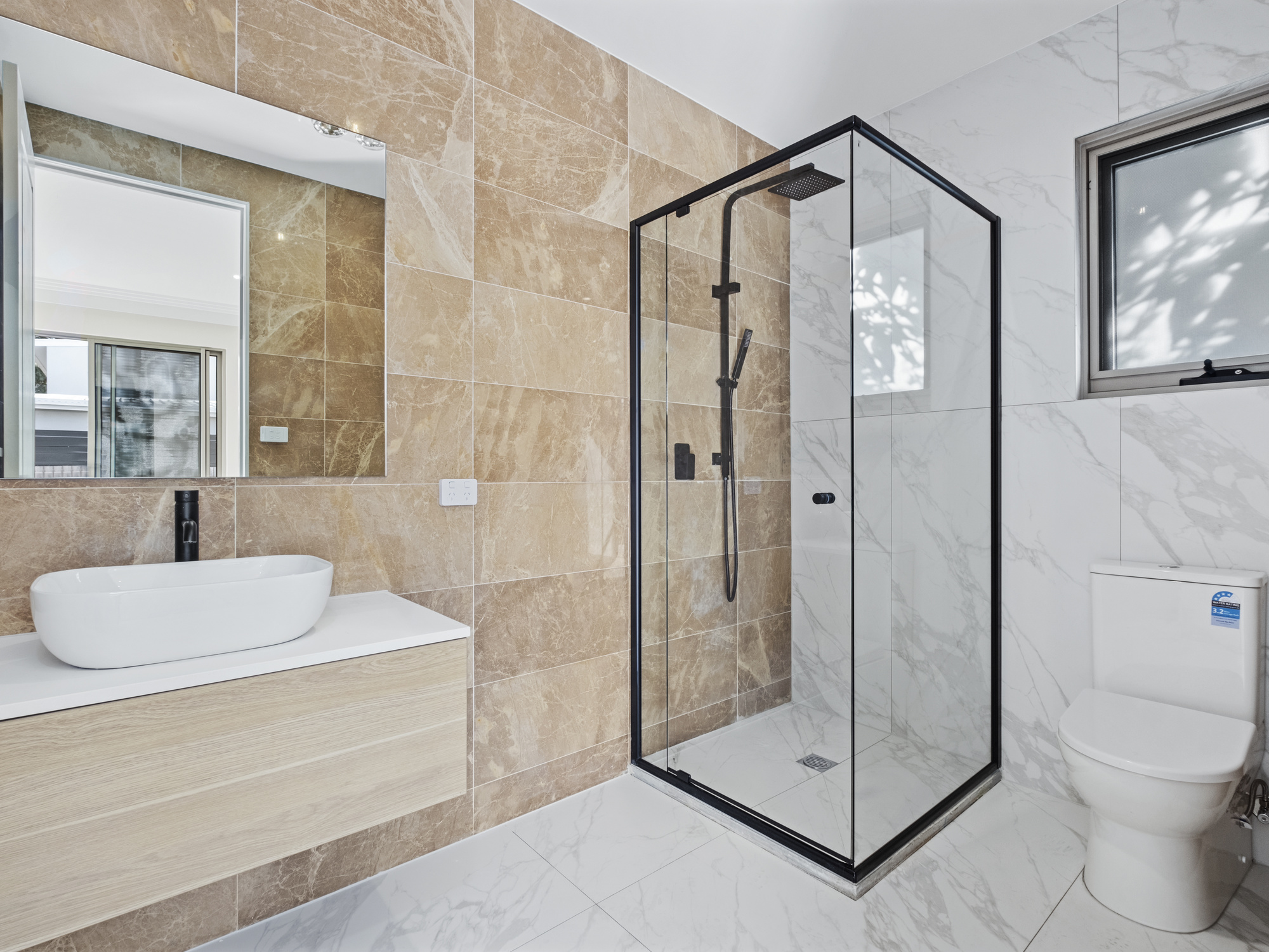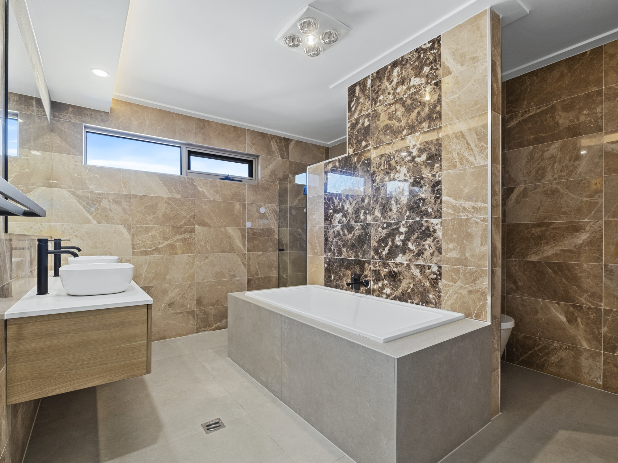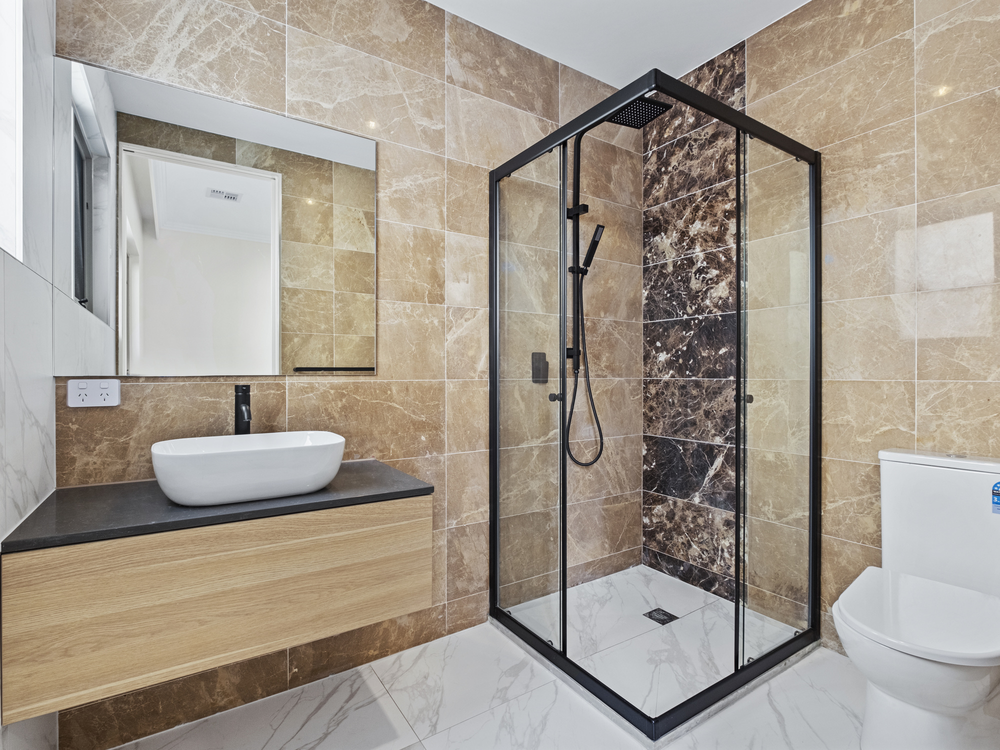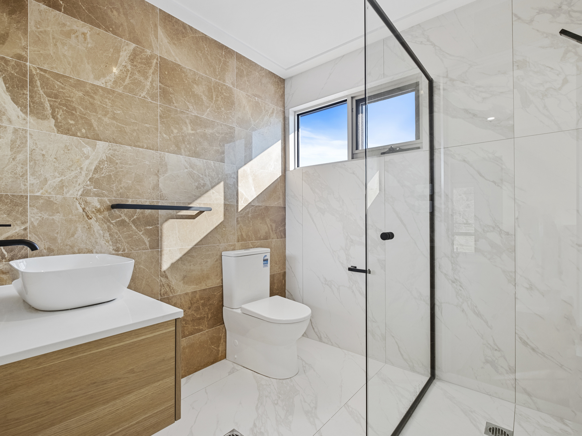 The home features two bedrooms on the lower level, with an optional third bedroom or rumpus room, all equipped with built-in robes for ample storage. Two of these bedrooms come with ensuite bathrooms, adding a touch of luxury.