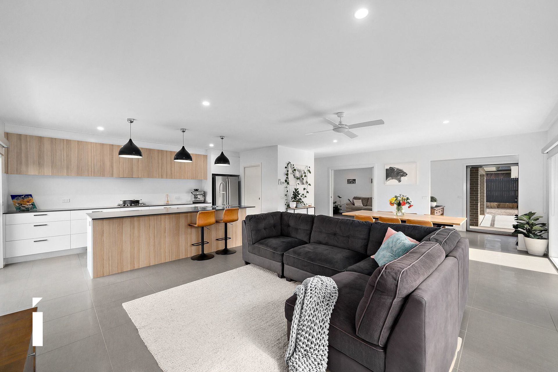 - In-slab heating throughout - Double-glazed windows and doors - Double garage with internal access - Ceiling fans in the family room, lounge room, and bedrooms - Split system heating and cooling in the family room and main bedroom - Large kitchen with quality appliances, walk-in pantry, and external access - Bedrooms with built-in robes - Main bedroom with walk-in robes, ensuite and external access - Laundry with abundant storage and external access - Main bathroom with bath, shower, and tastic lighting - Ensuite with shower and tastic lighting - Separate toilet and powder room - Low-maintenance yard - Outdoor paved entertainment area - Storage area, currently used as a gym - Garden shed - 4,000L water tank - Security camera system - Rinnai Instant gas hot water system
