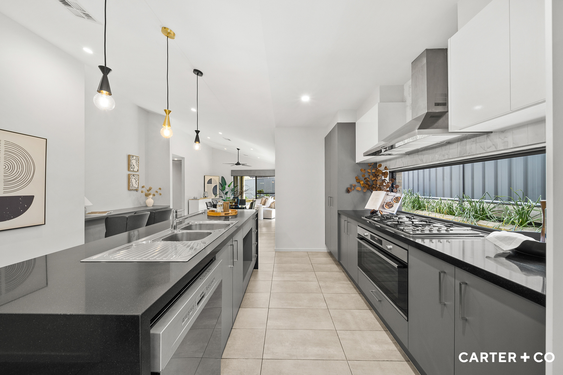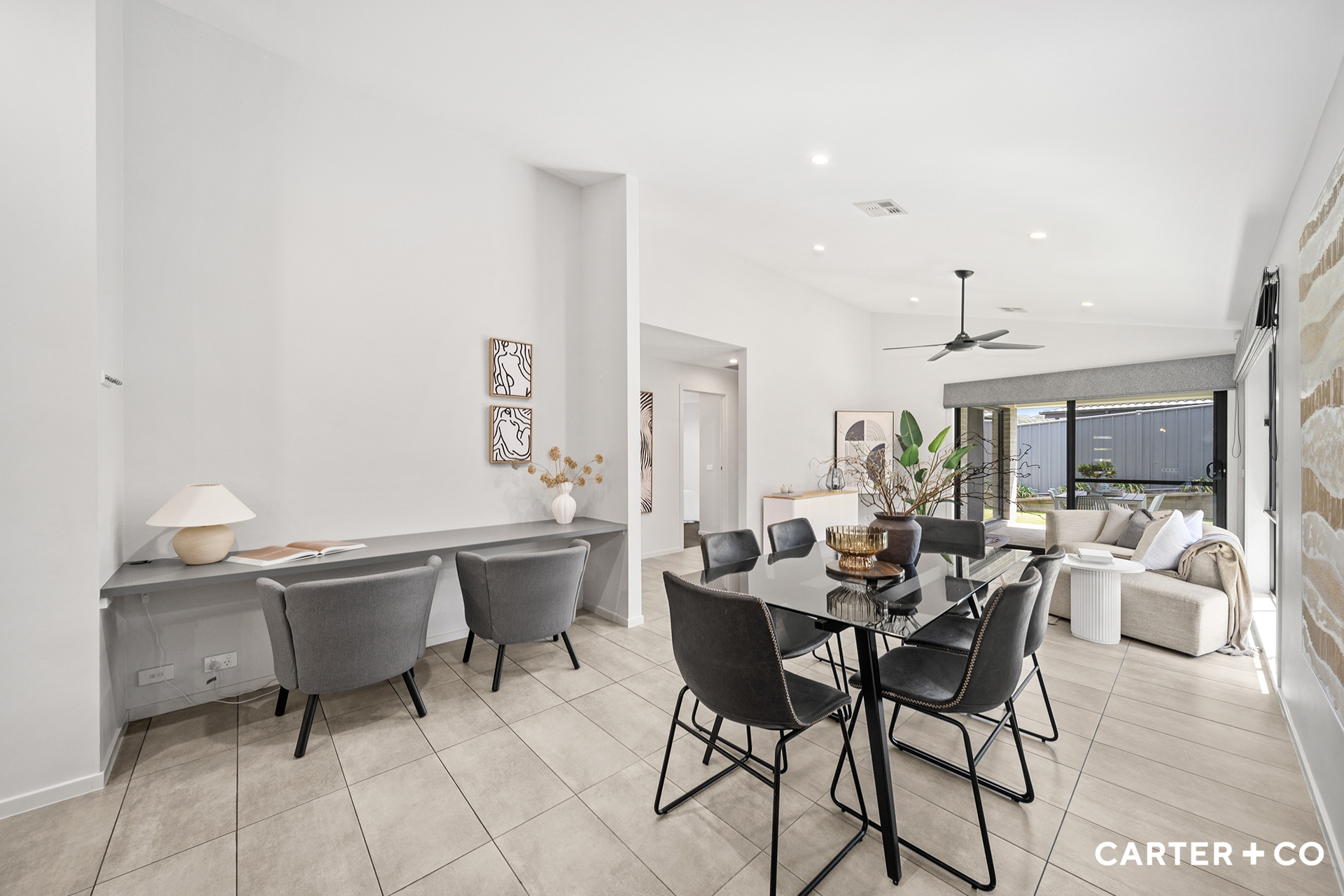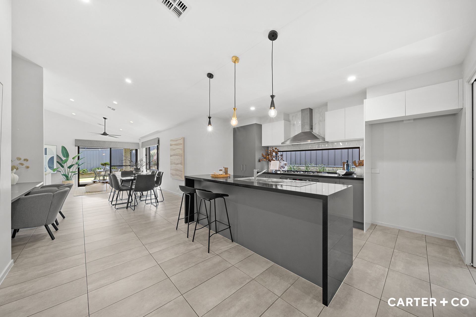 + Stunning single-level home with open-plan living + Spacious master bedroom complete with walk-in robe, ensuite, ceiling fan and external access + Bedrooms two, three, and four all with built-in robes + Large formal lounge room + Open plan kitchen, dining, and second living area + Kitchen complete with walk-in pantry, 900mm gas cooktop, 900mm electric oven and dishwasher + Study nook + Tiled flooring throughout and carpeted bedrooms