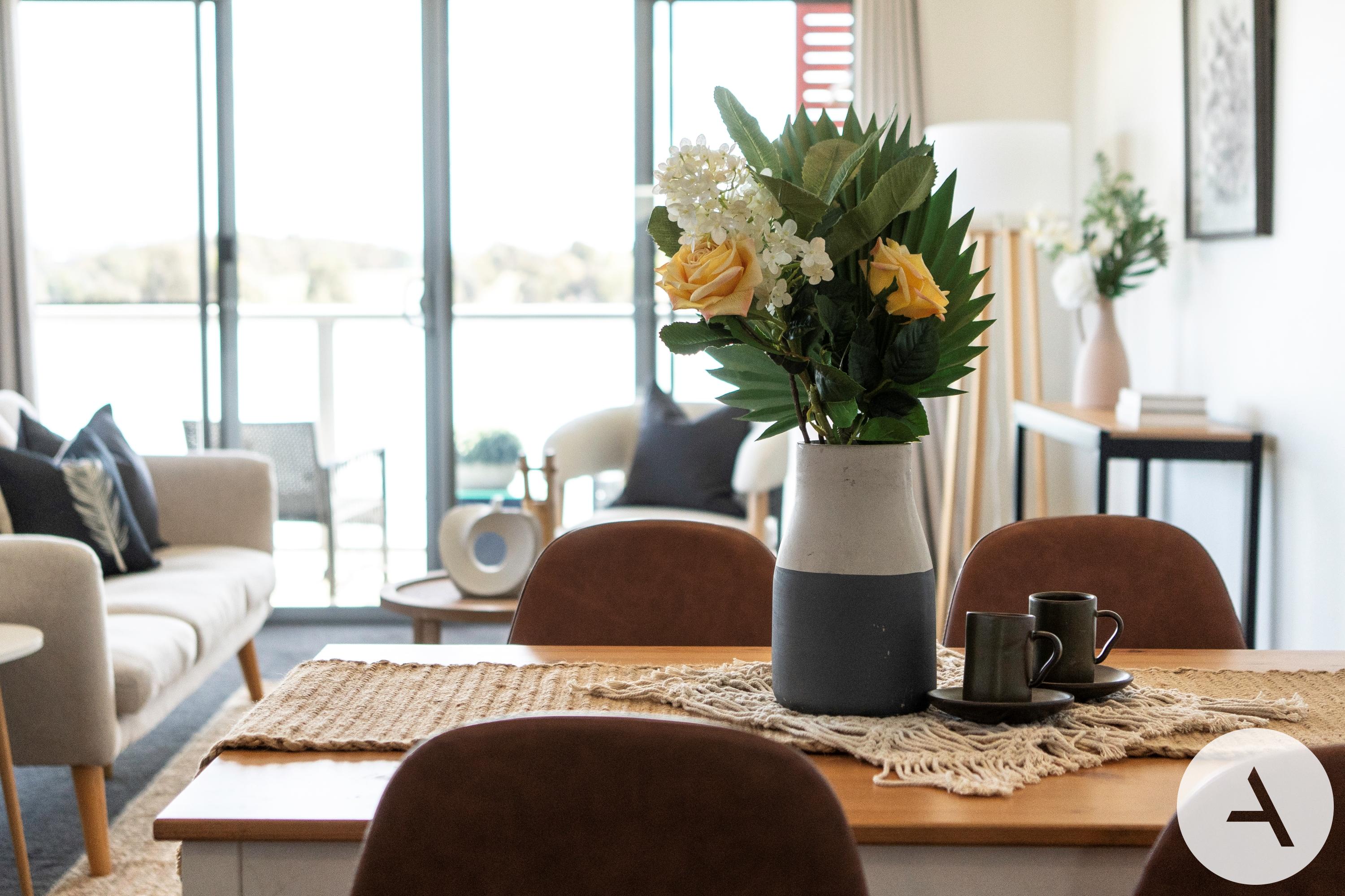 Designed for a stylish yet low-maintenance lifestyle, this modern dwelling takes full advantage of its corner position, featuring extra windows that flood the home with natural light and create an airy, breezy atmosphere. The spacious living and dining areas seamlessly extend onto a large wrapping balcony, where you can relax and take in picturesque views of the reserve wetland and the majestic mountains and iconic Telstra Tower in the distance.