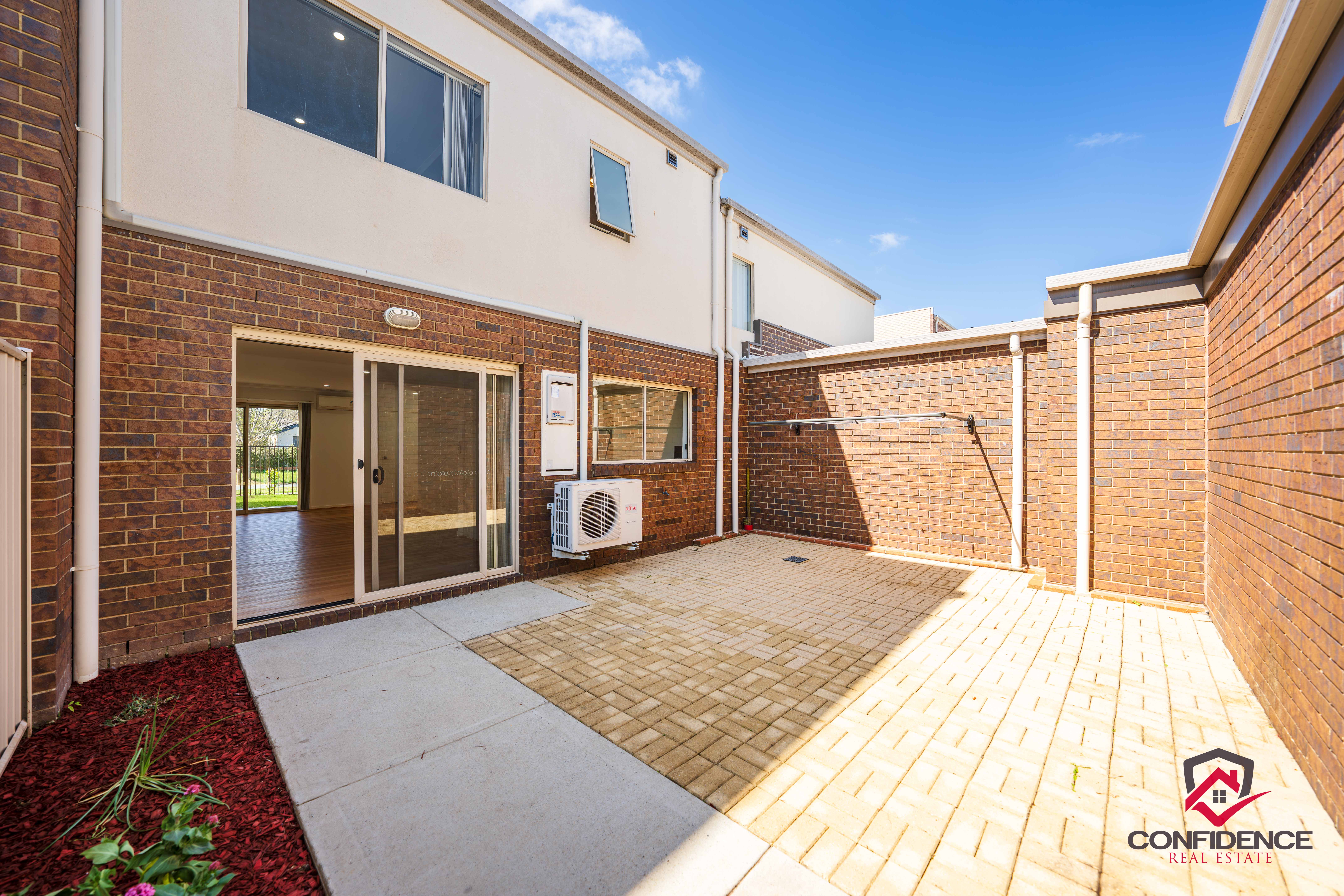 Convenience and Lifestyle all in one! Nestled in established development of Kianga’ this beautifully presented, 2 storey, 2 bedroom ensuite townhouse is waiting for its next owner. Conveniently located just 2 minutes’ drive to the constantly developing Gungahlin Town Centre, this home is just perfect for someone searching for a modern home in an affordable price bracket. Featuring a light filled, spacious floor plan, downstairs the open plan living allows for a lounge & dining area designed to be segregated by furniture. There are 2 fantastic courtyards; the front opens off the living room with low maintenance garden beds filled with established plants. Opening off the meals area you will discover the second fully enclosed courtyard, a great extension to your internal living area & perfect for outdoor furniture & barbeque to enjoy when friends & family visit. The modern kitchen is positioned at the rear of the home, offering gas cooking, stainless steel appliances, stone benchtops plus ample cupboard space. Both bedrooms are located upstairs, separate from the hustle & bustle downstairs. The main bedroom includes an ensuite & mirrored robes as well as a balcony with elevated views. Bedroom 2 also has built-in-robes & shares the neat & tidy main bathroom. The owners have installed additional upgrades to this townhouse after purchasing it off plan which included adding additional air conditioners & paving the rear courtyard creating a fantastic, low maintenance space. Further benefits include a powder room (a 3rd toilet) located downstairs, large under stair storage room & a single remote controlled garage with access through the rear courtyard.