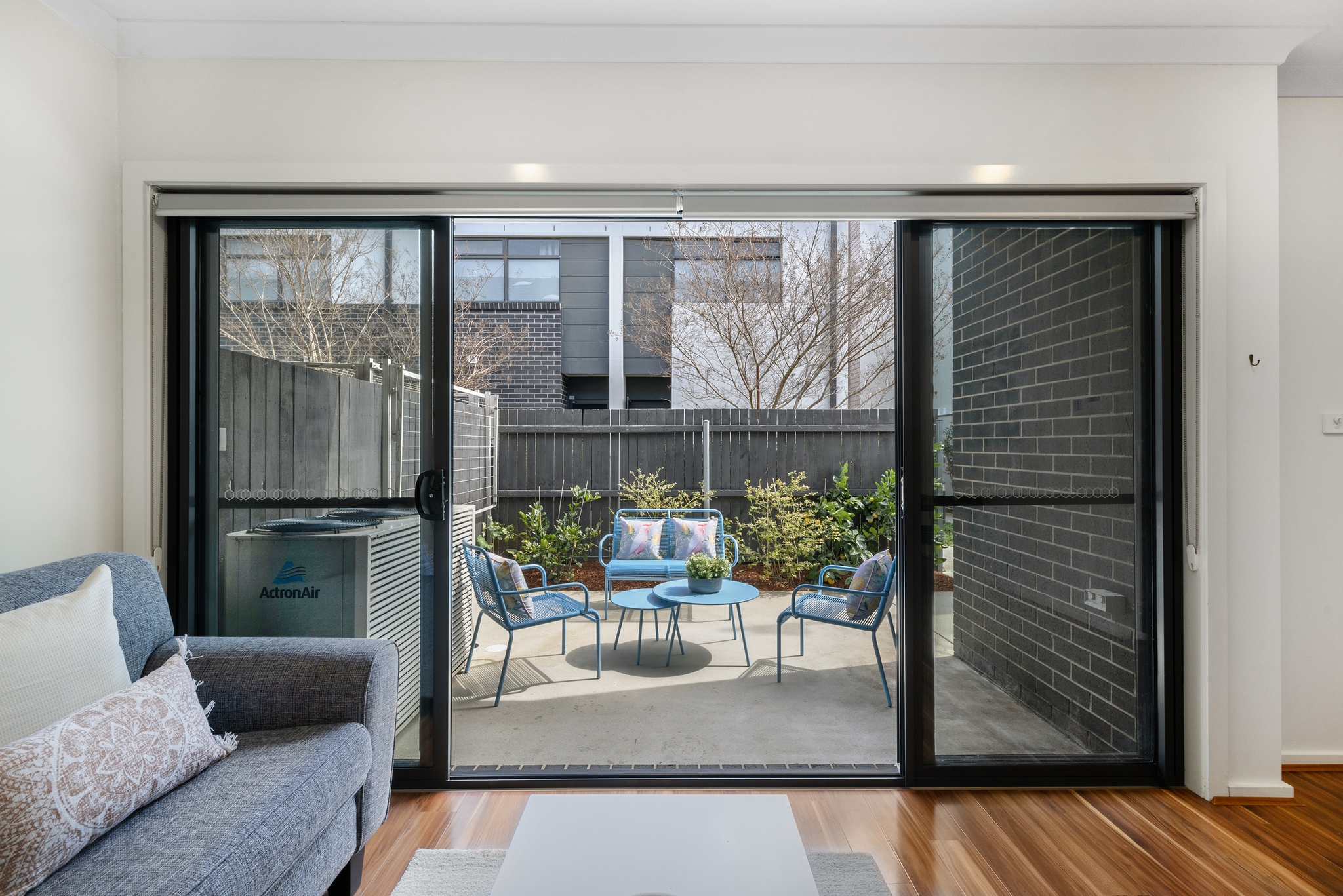• ‘End’ townhouse with north aspect • Generous kitchen with large stone bench space, ample cupboards, quality Ariston appliances including 900mm gas cooktop, rangehood and 600mm oven, plumbed fridge space, fully integrated microwave and dishwasher • Master bedroom with robe, ceiling fan, ensuite and private balcony • Additional two spacious bedrooms (bed 2 with built in robe, bed 3 with walk in robe) • Main bathroom with bath and shower • Separate toilet • Downstairs powder room • Ducted reverse cycle heating and cooling • Edmonds Odyssey – ventilation system • Double glazed windows • Quality blinds, carpet and timber flooring • LED downlights • European laundry • Low maintenance courtyard perfect for entertaining • Double garage with remote and internal access • NBN and data points • 6.6 KW solar system with 22 solar panels • Light rail stop a short stroll from the front door • Close proximity to Harrison School, Burgmann Anglican School and Gungahlin College • Water tanks to Artego development for common area irrigation • Communal BBQ’s and pool area